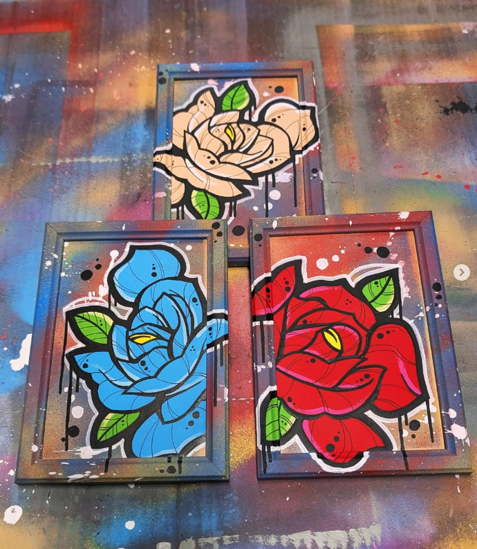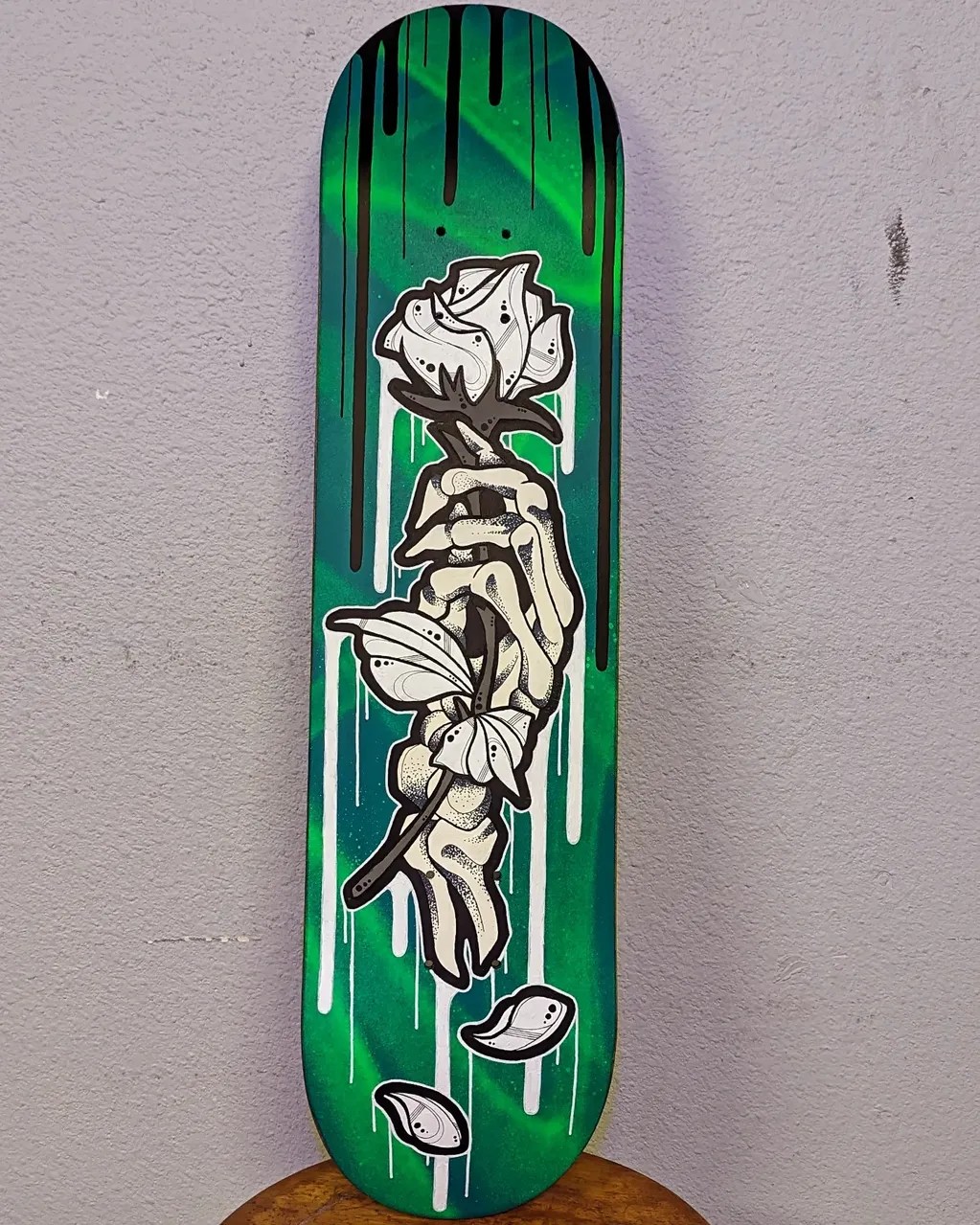Diego doesn’t limit himself to canvas work, but also skateboards, apparel and extraordinary framework. At one point, he decided to try tattooing and that’s where he learned how to have a steadier hand to ensure the art he created on skin was nothing less than perfection.