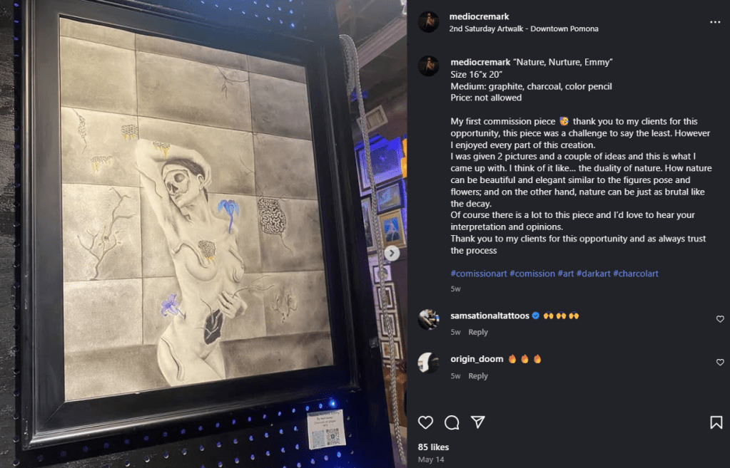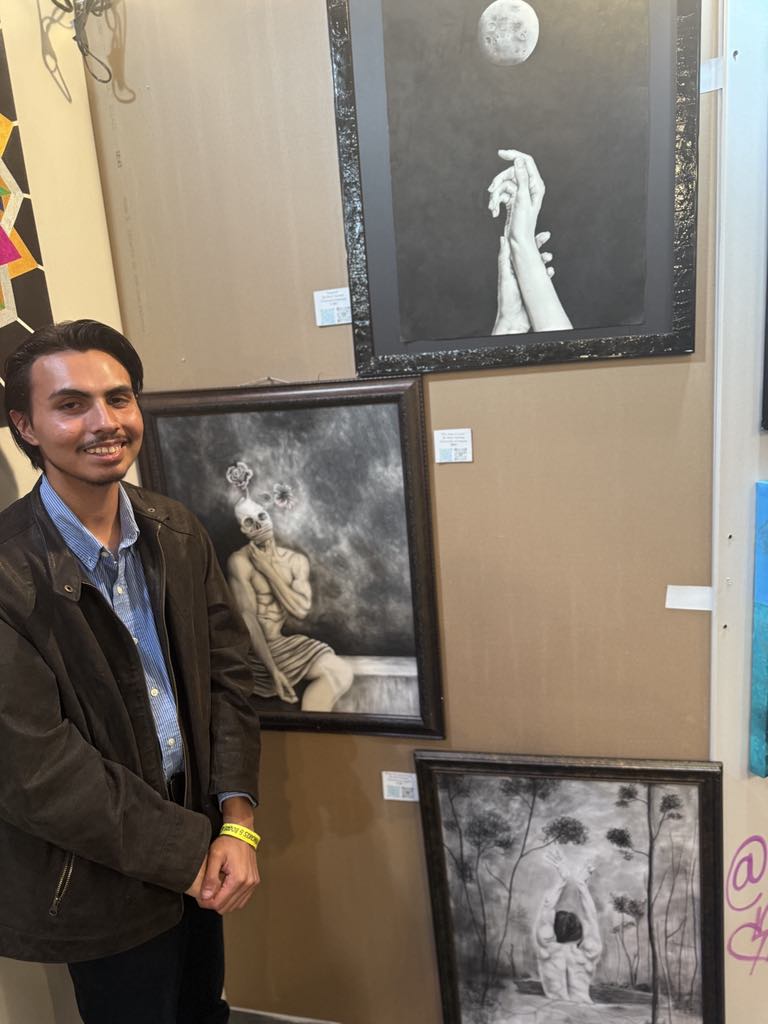 In the vibrancy of the art community surrounding Pomona, CA, there is a quiet, but enchanting presence resonating through the charcoal and graphite of Mark Gomez’s masterpieces. His art doesn’t just ask to be admired, it demands to be deeply felt. Each and every piece feels like a well-kept secret that is finally being said out loud, in a moment of stillness and chaos, and at the heart of it all is Mark: soft-spoken, observant, and deeply human.